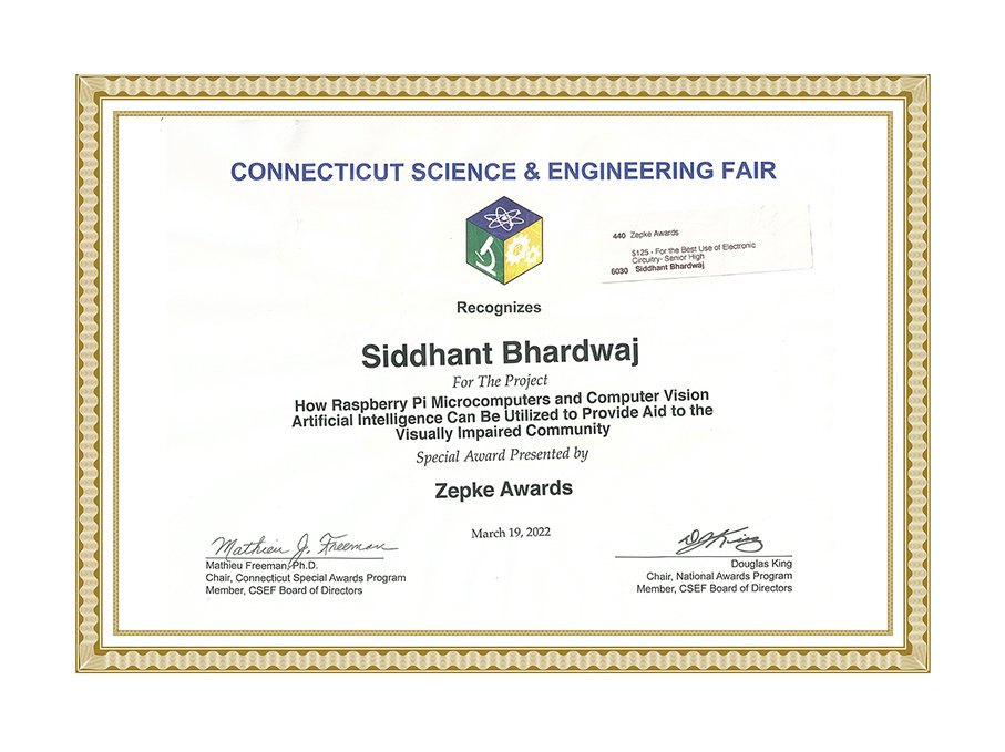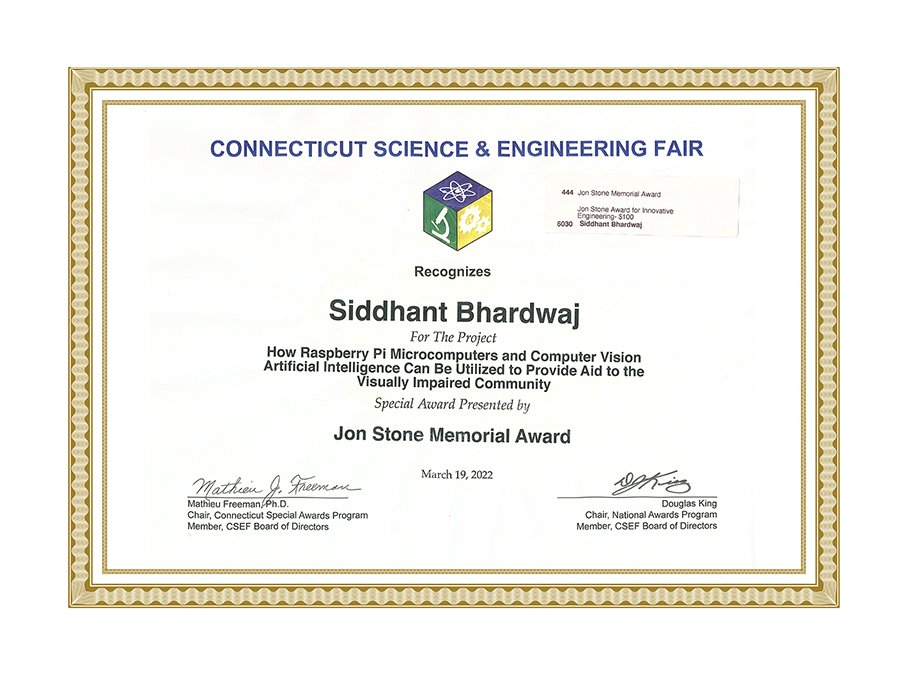 Performance tests were done on both the ultrasonic sensors and OpenCV to determine their accuracy. More research and development is needed to expand the functionality of the device, including multiple modes for different applications of the Computer Vision AI for different situations.