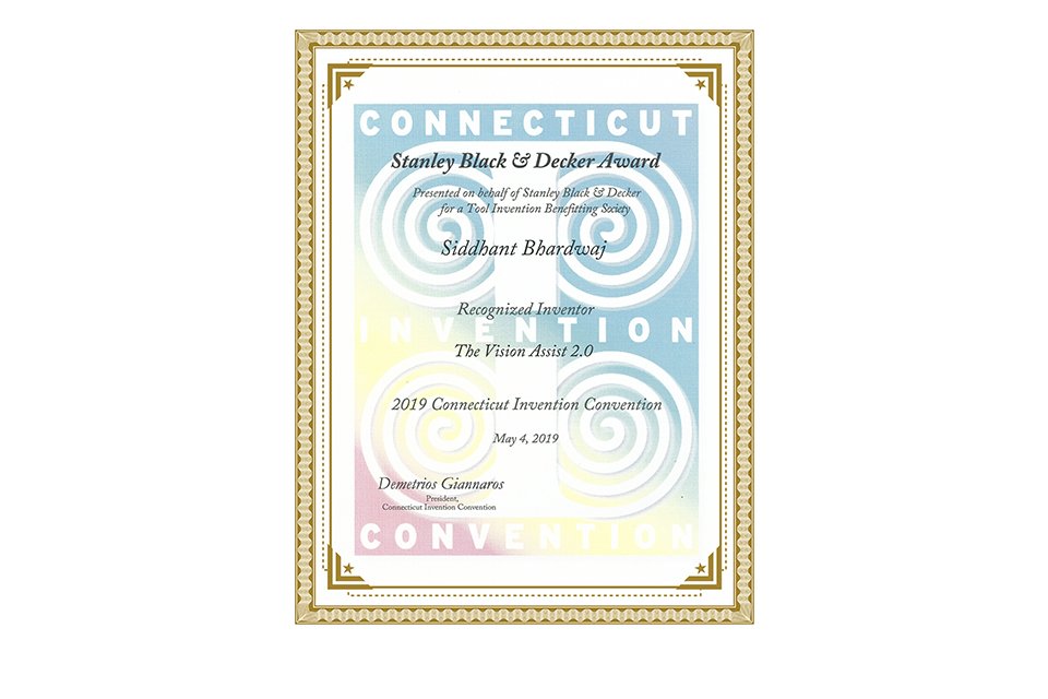 In 2018, I constructed Vision Assist 1.0, and continued to improve the solution with the award-winning device, Vision Assist 2.0, in 2019.